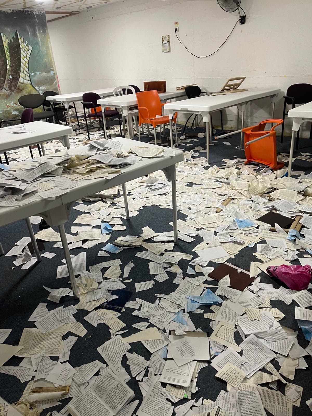 Juste avant shabbat, les fidèles de la synagogue yéménite de la localité de Kadima-Tzoran dans le Sharon ont découvert que le lieu de culte avait été profané : des rouleaux de la Torah gisaient à terre et des livres de prières avaient été déchirés et leurs pages éparpillées dans toute la pièce.