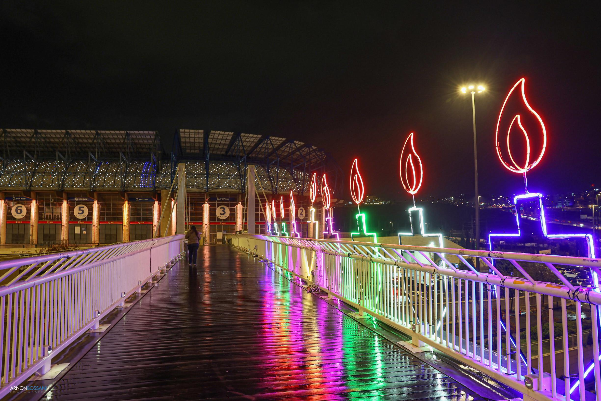 Ménorah multicolore en forme d’arc-en-ciel, traversable par le public