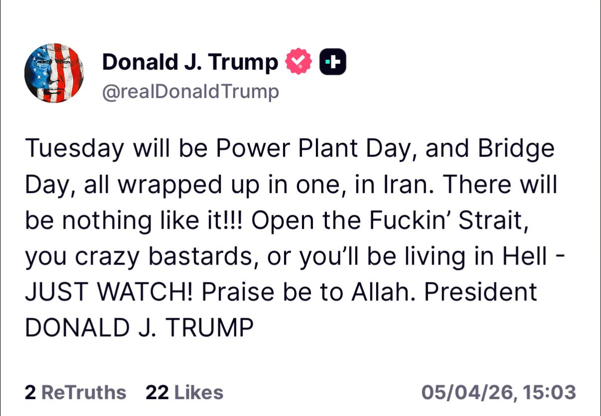 Donald Trump a choisi une nouvelle fois Truth Social pour faire monter la pression contre le régime islamique iranien. Dans un message particulièrement brutal, publié à l’approche de l’expiration de son ultimatum, le président américain a exigé la réouverture du détroit d’Ormuz et menacé l’Iran de frappes contre ses centrales électriques et ses ponts. Au-delà du fond, la forme compte aussi : en passant par son réseau social, Trump transforme sa menace militaire en démonstration publique de force, adressée à la fois à Téhéran, aux marchés et à ses alliés.